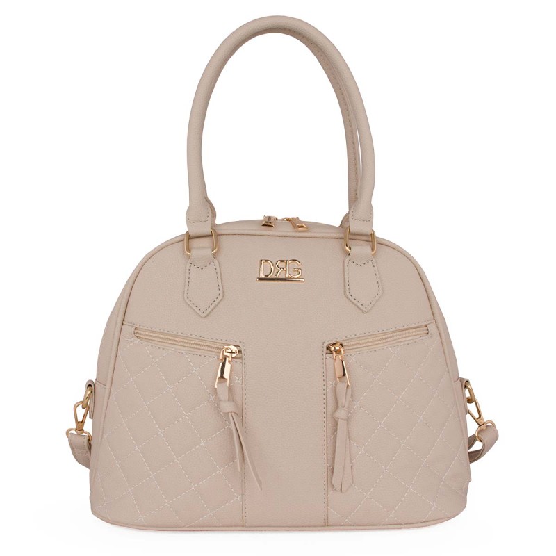 Women's cρεαμ shoulder bag. Made of eco-leather. It features 2 inner compartments, one with a zipper, and 3 outer compartments with zippers on the front and back.Adjustable, detachable crossbody strap. Dimensions: H 28cm, W 36cm, D 12cm. "Designed in Greece exclusively by De Raggi designers".